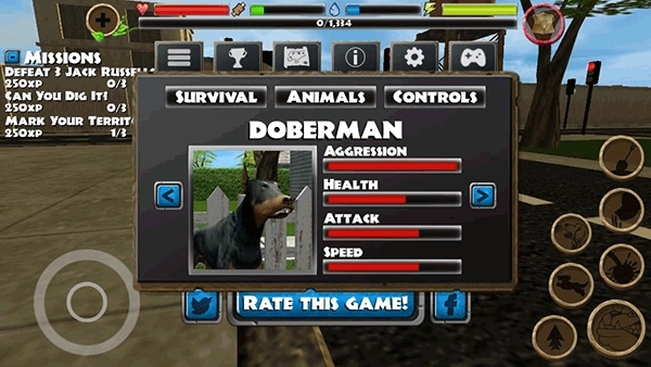 捕猎松鼠、兔子、老鼠、鹿、鸟、羊、鱼、浣熊、狐狸、猫、狗、狼、熊、猫头鹰等动物!成为家犬,由你的主人负责喂养!
