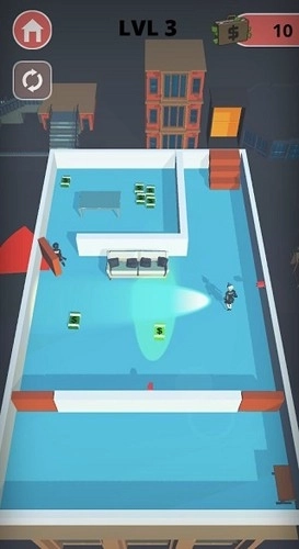 不可能的抢劫2是一款轻松上手的休闲益智游戏,独特有趣的画面设计,诙谐搞笑的玩法方式,在游戏里玩家要做的就是操控好手下的小偷,作为抢劫犯的你在盗窃完所有的物品之后,你的身后就会追出许多的警察,所以这个时候你就需要躲避掉他们的追捕,过程还是非常考验玩家的操作性,出去警方面前的红色区域,只要躲避掉那块区域,你就可以成功逃离啦,喜欢的朋友快来挑战吧!