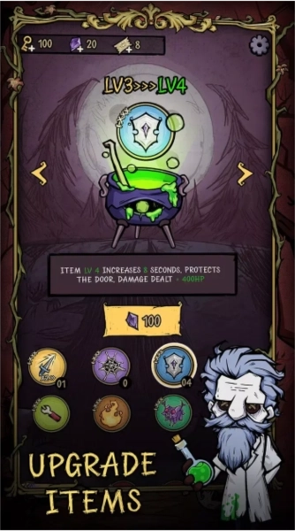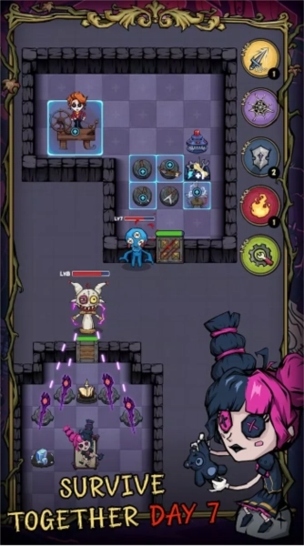 3.大家作为守卫者需要努力加固宿舍大门并提高防御能力来避免猛鬼的闯入,可以通过金币升级大门布置塔防,考验发展技巧。