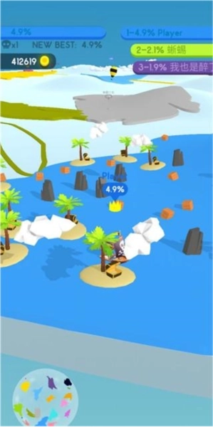 纸片大作战4中文版是一款画风简约的休闲益智竞技游戏,玩家只需在游戏界面滑动屏幕就能操控纸片在地图上移动,简单的操作甚至可以省去常规的新手教程。游戏初期,由于空地面积充足,玩家会感到比较轻松;但随着空地被众多对手逐渐瓜分,彼此的领地越来越相邻,你就必须开始制定吞并计划了。寻找其他玩家的地盘进行吞并,争夺最终的胜利吧!感兴趣的小伙伴们,欢迎来体验纸片大作战4中文版哦!