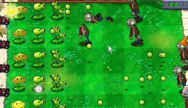 7、最末尾依然可以种植向日葵,等僵尸靠近后,就可以种植豌豆射手,这样也能把它们快速消灭掉。