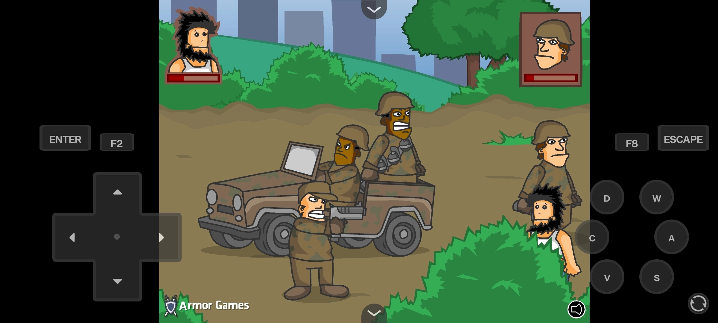 游戏目标:在各关卡中击败以美军为主要构成的不同敌人团体,顺利通关并持续逃亡。随着游戏的推进,或许还会出现其他特定任务,例如抵达指定位置、守护特定角色等。
