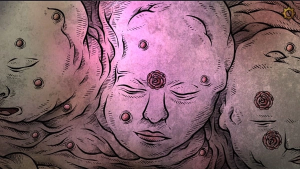 8、从嘴巴里出来后一直往右走,先和三个女人头对话,接着继续向右走到电梯处,然后进入电梯前往标本馆