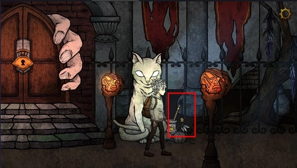 5、进门后径直向右走,剧情结束后逗猫棒会出现在书包里,接着继续往右行进。此时要留意手背上带有宝石的手指,右侧有一个箱子,按照蓝3、紫8、红4、黄2、绿1的顺序点击,就能打开箱子并获取红色种子。
