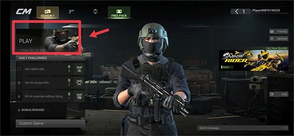 1、首先打开战术大师,该游戏需要使用加速器启动,进入游戏主界面后,点击“play”按钮开始匹配其他玩家。