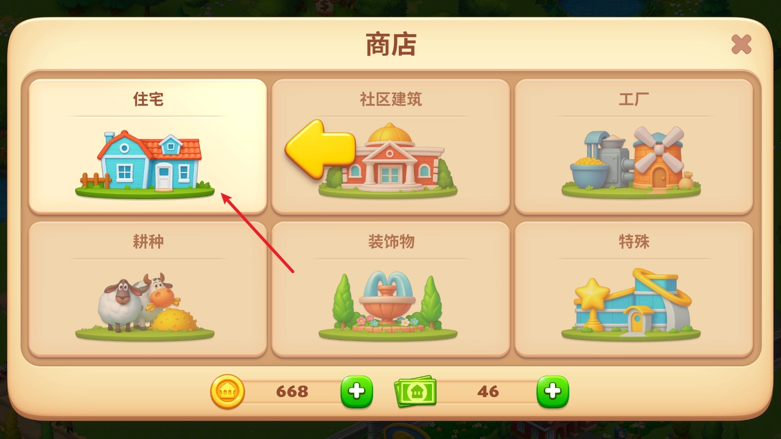 3、房屋建造完成后,其上方会出现用于增加人口的按钮,点击该按钮即可。