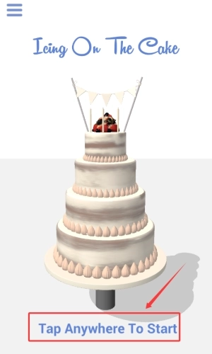 1、点击红框箭头所指的任意位置,即可开启糖霜装饰蛋糕的游戏。