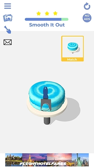 1、大家只需按住铲子并拖动,就能对蛋糕进行塑形,上方显示的是完成进度条。