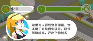 这里是您的金条储备展示区域。这些金条能够用来升级商业设施,等级越高,货物的产出效率也会显著提高。