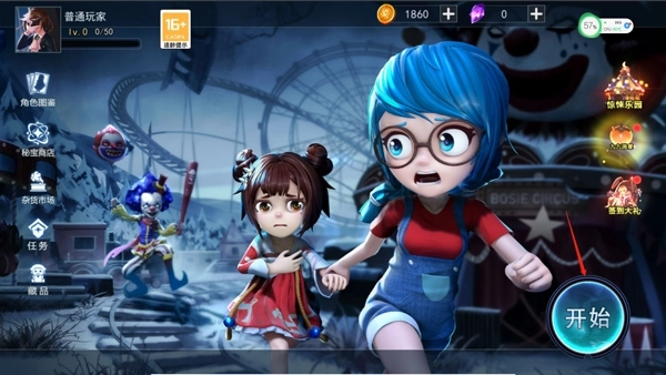 4、接着会进入角色选择界面,随着等级的提高会解锁更多角色,右侧还能装备道具,确认没问题后点击开始。