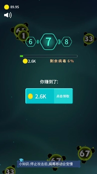 3、游戏采用关卡制设计,随着挑战进程的推进,病毒的能力会逐步提升,例如体积增大、移动速度加快等。