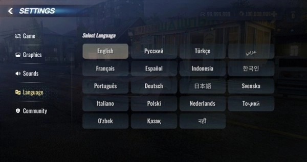 若玩家希望更改游戏当前的语言设置,可点击SETTINGS选项进入设置界面。在设置页面中找到Language选择栏,点击选择想要使用的语言即可。需要说明的是,目前该游戏暂时不支持中文。