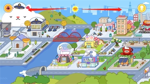 1、进入游戏后,通过左右滑动屏幕就能查看小镇的全景地图,从而快速找到自己想去的地方。