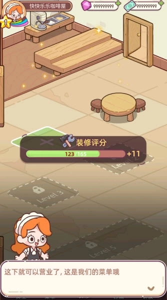 3、命名完成后,点击咖啡店的门就能进入店内,开启你的装修和经营之旅。