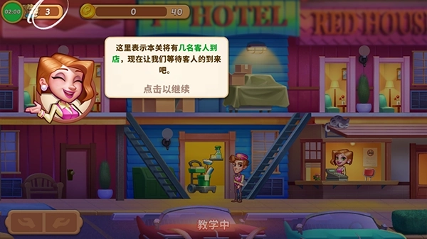 2、游戏过程中,上方会显示酒店入住的客人信息以及完成任务所需赚取的金币数量