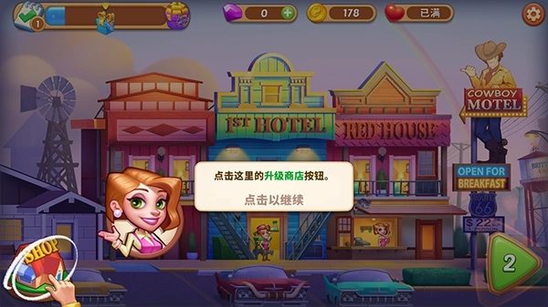 6、点击这里,就能给玩家的酒店升级啦!以上就是这款游戏的基础玩法说明,希望玩家们用心经营,尽快把自己的酒店打造成豪华大酒店哦!