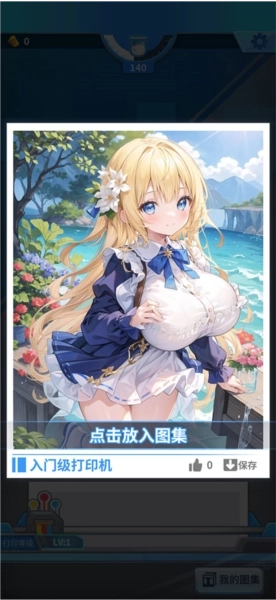 《二次元打印机》是一款以美少女收集为核心玩法的点击放置类游戏。玩家通过操作这台充满奇幻色彩的“二次元打印机”,制作并收集风格各异的美少女角色立绘。游戏内设有“二次元浓度值”系统,玩家积累该数值不仅能解锁限定图片,还可抽取涵盖科幻、机械、插画等多元主题的稀有打印机。随着浓度值逐步提升,玩家可对打印机进行升级,从而加快打印速度、增加单次打印的格数。值得一提的是,游戏还贴心地配备了图片保存与分享功能,玩家能将心仪的立绘保存至本地,与同好交流互动,沉浸式感受美少女文化的独特魅力。