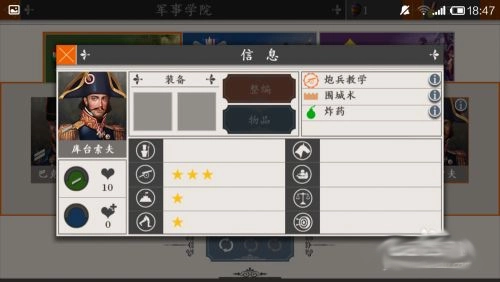 2、在一星将领里,胡尔的表现十分亮眼,他主要负责步兵战线,不仅有着4星的步兵等级,还掌握着实用的技能;瑟克沃尼基则在炮兵作战方面颇具专长。不过,最值得大家推荐的依旧是库台索夫。