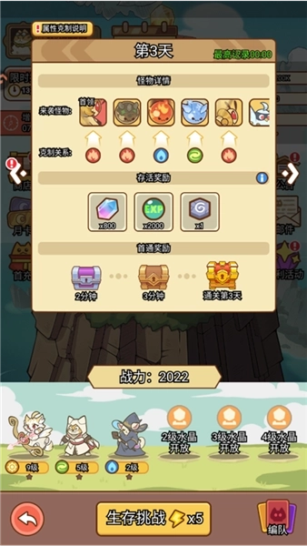 1、点击生存挑战,在这里你可以查看当前天数对应的敌人与BOSS的克制关系。
