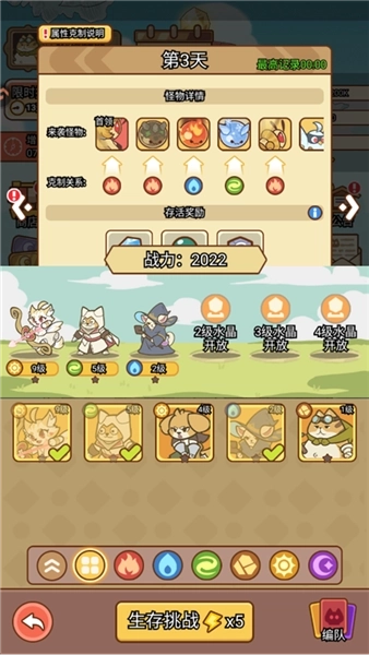 2、创新塔防,策略布阵:打破传统塔防玩法的束缚,需依据不同关卡的特点,巧妙搭配具备各异属性与技能的猫咪。利用猫咪之间的属性羁绊作用,可组合出威力强劲的连锁技能,使塔防对战满是策略性与不确定性。