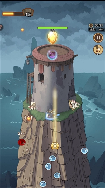 4、守护高塔,共筑家园:玩家承担着守护喵族圣地通天高塔的核心职责,在激烈的战斗间隙,还能亲自装扮、升级猫咪庭院。和悉心培育的猫咪互动,还可解锁它们的趣味日常故事,使游戏体验既有战斗的热血激昂,又不失休闲的温馨惬意。