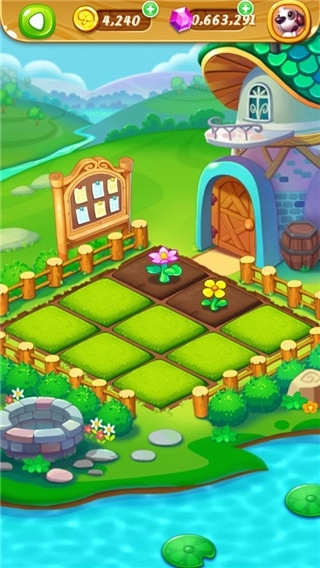 1、这是一款玩法简单的合并消除游戏,把两朵相同的花合并在一起,就能得到更高级的花。不过要注意,每朵花都只能和自己相邻的花进行合并。