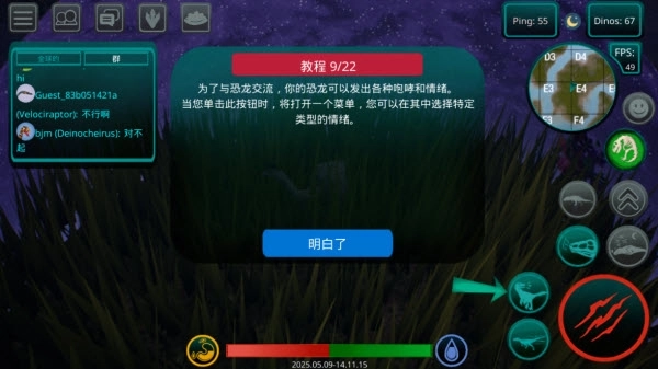 8、借助吼叫系统,恐龙能够传达多样的情绪与意图。点击相应按钮即可打开情绪菜单,从中选择咆哮、示威或是交流的方式,来和其他生物进行互动。