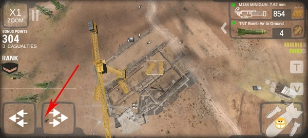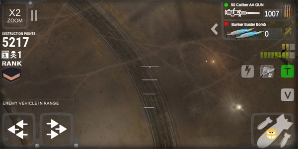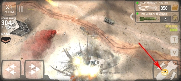 3、这里玩家需要利用虚拟按键控制飞机飞行,还需要控制导弹坠落;