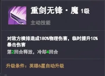 对敌方横排目标造成180%的物理伤害,并临时增加自身10%的暴击伤害