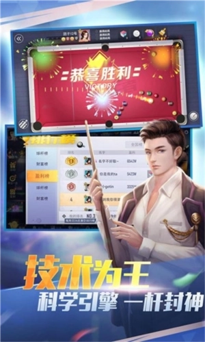 在这里,你既能体验经典的8球、9球与斯诺克,也能尝试高手进阶、挑战赛等趣味玩法。操作方式简单流行,动画特效绚丽夺目,再加上真实的物理参数,精准的进球瞬间与激动人心的赛事进程,究竟谁能摘得冠军桂冠?让我们共同期待。此外,《台球王者》游戏采用超强引擎还原真实物理运动,助你花式炫技、一杆封神,带来最逼真的线上台球体验!不仅如此,玩家还能领取免费酷炫的3D特效,搭配百变球杆,打造极致沉浸的台球氛围,感受空心入袋的畅快与一发入魂的激情!