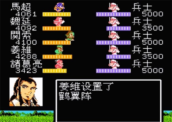 这是一种攻防一体的复合型阵型。其中,处于一、三、五号位的角色,攻击能力会提升至原来的1.6倍,同时所受伤害降低到0.8倍;而二、四号位的角色,攻击提升为1.2倍,受伤则减少至0.6倍。不过,该阵型会导致全队敏捷属性显著降低,在战斗中一般都会后于对手行动,只有在遇到相同类型的阵型时才可能例外。当对阵白马阵时,敌方还能获得每回合额外攻击一次的有利条件。所以,虽然这套阵型在各项数值上看起来相当出色,但在实际战斗中的应用频率却并不高。