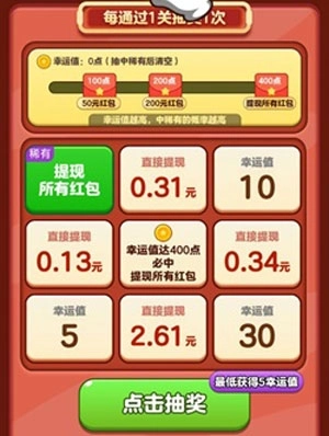 玩两关都可以拿到0.4左右红包。