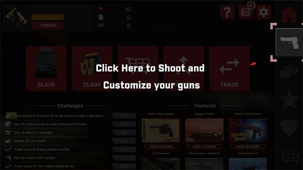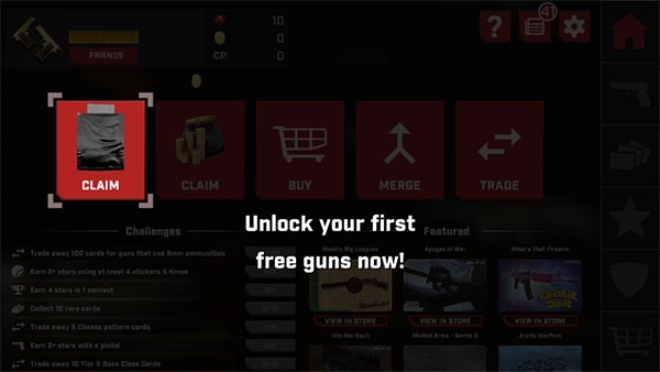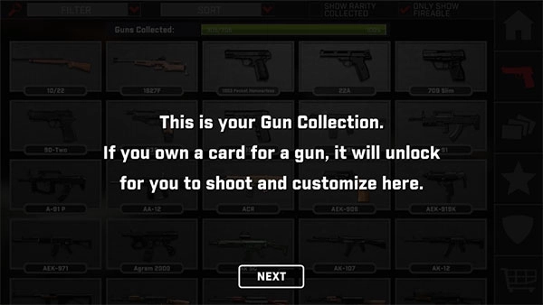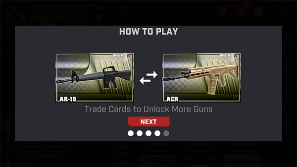 1、从本站下载的真实枪械2最新版本,进入游戏后会有新手教程引导,通过使用卡片就能解锁想要的目标枪支。