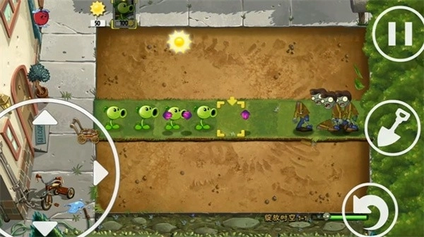 2、完成种植后,要留意及时收集天空中掉落的阳光,等积攒到足够数量,就能解锁更多植物种类,接着在空地上布置新的豌豆射手或者其他具备特殊功能的植物。