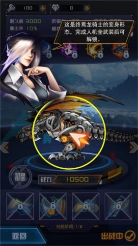 13、考虑到玩家之前的操作表现,现在你的机甲已成功突破性能极限,不妨试试全武装状态下才解锁的“变身翼龙”功能!