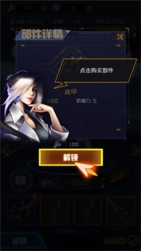 4、现在我们来为机甲选购部件,点击即可查看属性并完成购买。