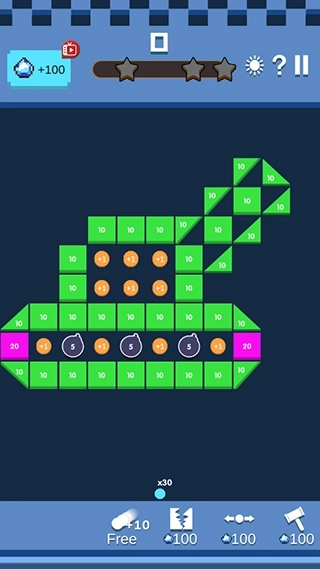 滑动屏幕来瞄准目标,系统会自动释放弹珠。消除所有砖块才能获得分数和星星。