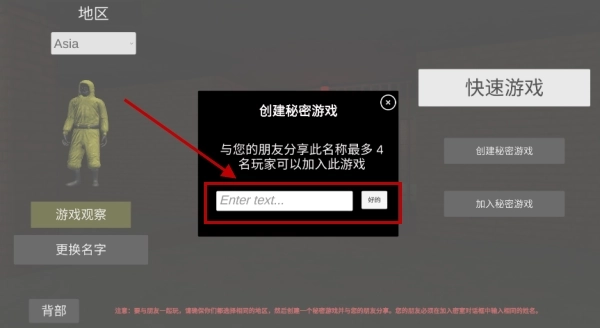 4、选定目标地图后,需设置一个四位数或更复杂的房间密码,以便邀请特定好友加入。
