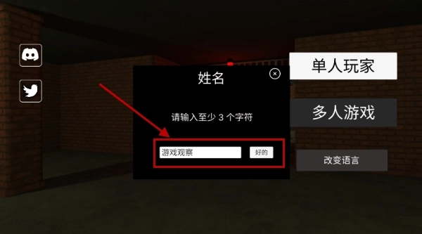 2、输入自定义昵称后确认进入联机大厅,要保证双方名称清晰可辨,这样才能方便识别队友。