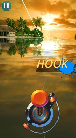 4、当屏幕显示“HOOK”提示时,意味着有鱼咬钩了,要马上向上滑动来完成提竿动作。
