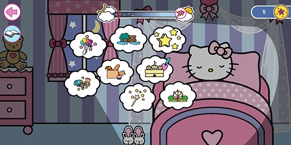 10、凯蒂猫已经进入梦乡,不过会有许多【梦境】以气泡的形式呈现,任意点击其中一个就能开启梦境游玩。