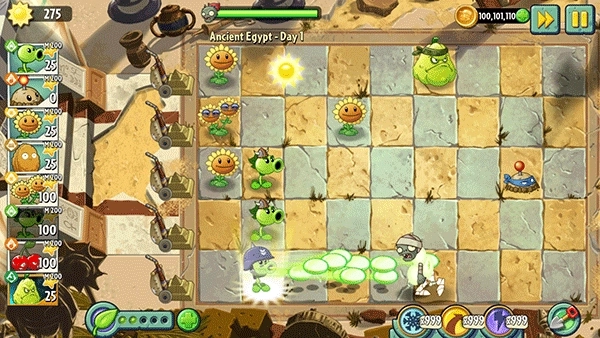 3、通过收集阳光来召唤新的植物,同时借助资源提升已有单位的能力等级,玩家可以自由尝试不同的搭配流派,探索多样的战术组合。