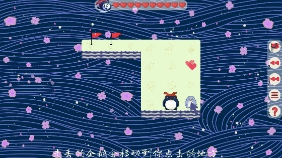 3、移动企鹅到达旗帜的位置即可完成闯关