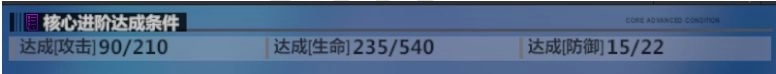 2、核心进阶从第2次起,进阶条件便要求攻击、生命、防御三项属性均达到对应数值,且随着进阶次数增加,所需的数值标准会逐步提升。