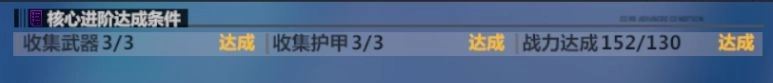 1. 核心进阶需要满足特定条件,且每次进阶的要求都不一样。其中第一次进阶的条件相对简单,只需要收集3件武器、3件护甲,同时核心战力达到130即可。