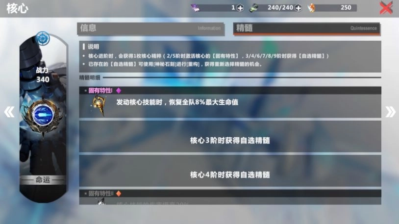 当核心进阶到2、5阶时会激活核心的【固有特性】,不同的核心的固有特性各不相同,可以帮助我们应对不同的敌人