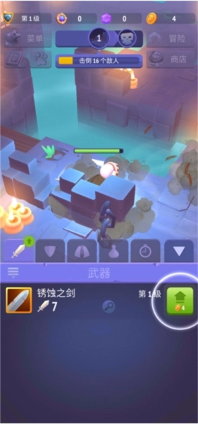 4、对装备进行升级操作时,需要消耗一定数量的金币,而金币的获取途径是击败敌人。