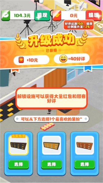 2、免费装修功能:玩家能够按照自身的偏好来装扮店铺,从而吸引到更多顾客。