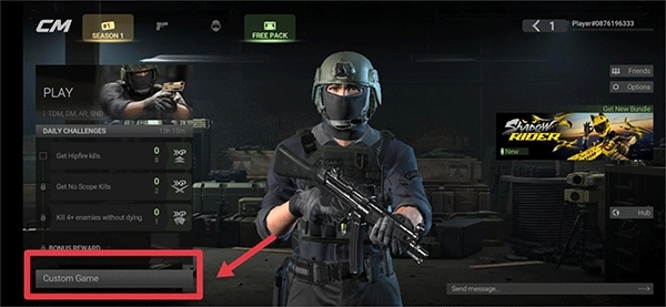 3、成功添加并确认好友关系后,返回主菜单,选择左下角的“CustomGame”自定义房间功能