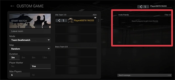 4、把左侧的游戏模式设置妥当后,在右侧的“InviteFriends”列表里选择已经通过验证的好友发出邀请,就能组队一起参与对战了(需要注意的是:没有通过验证的好友是不会显示在邀请名单里的)